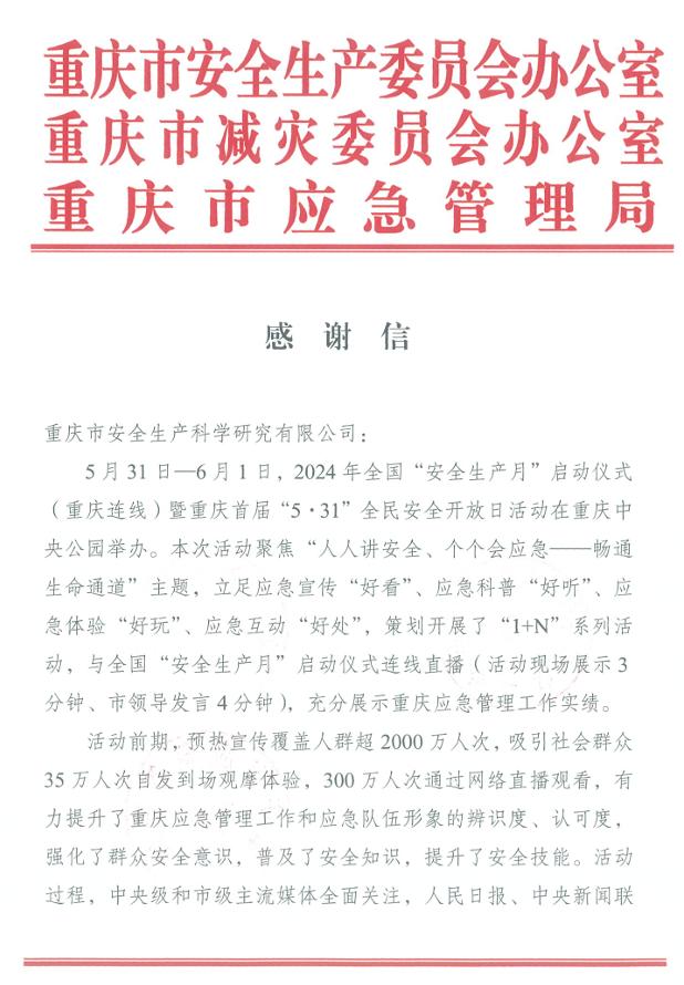 市安委辦、市減災(zāi)委辦、市應(yīng)急局向公司致感謝信