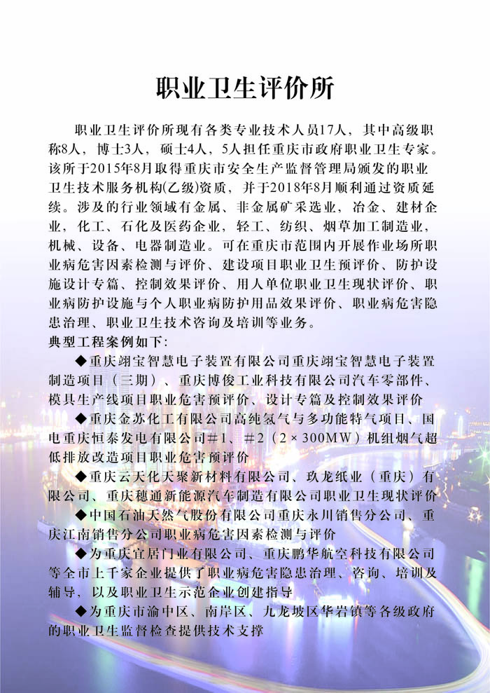 當(dāng)前位置:走進(jìn)安科>職業(yè)衛(wèi)生評(píng)價(jià)所
