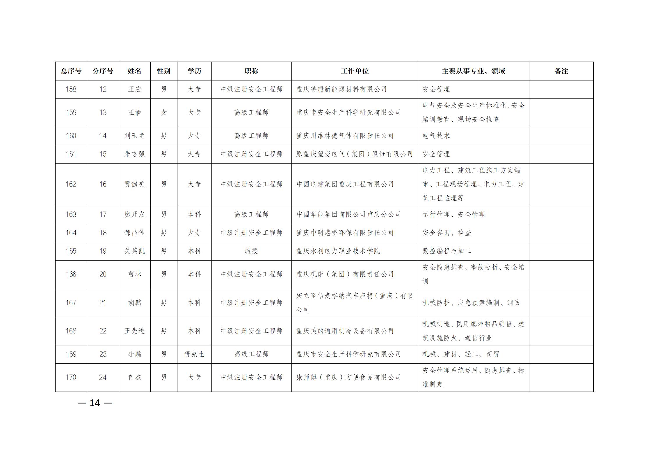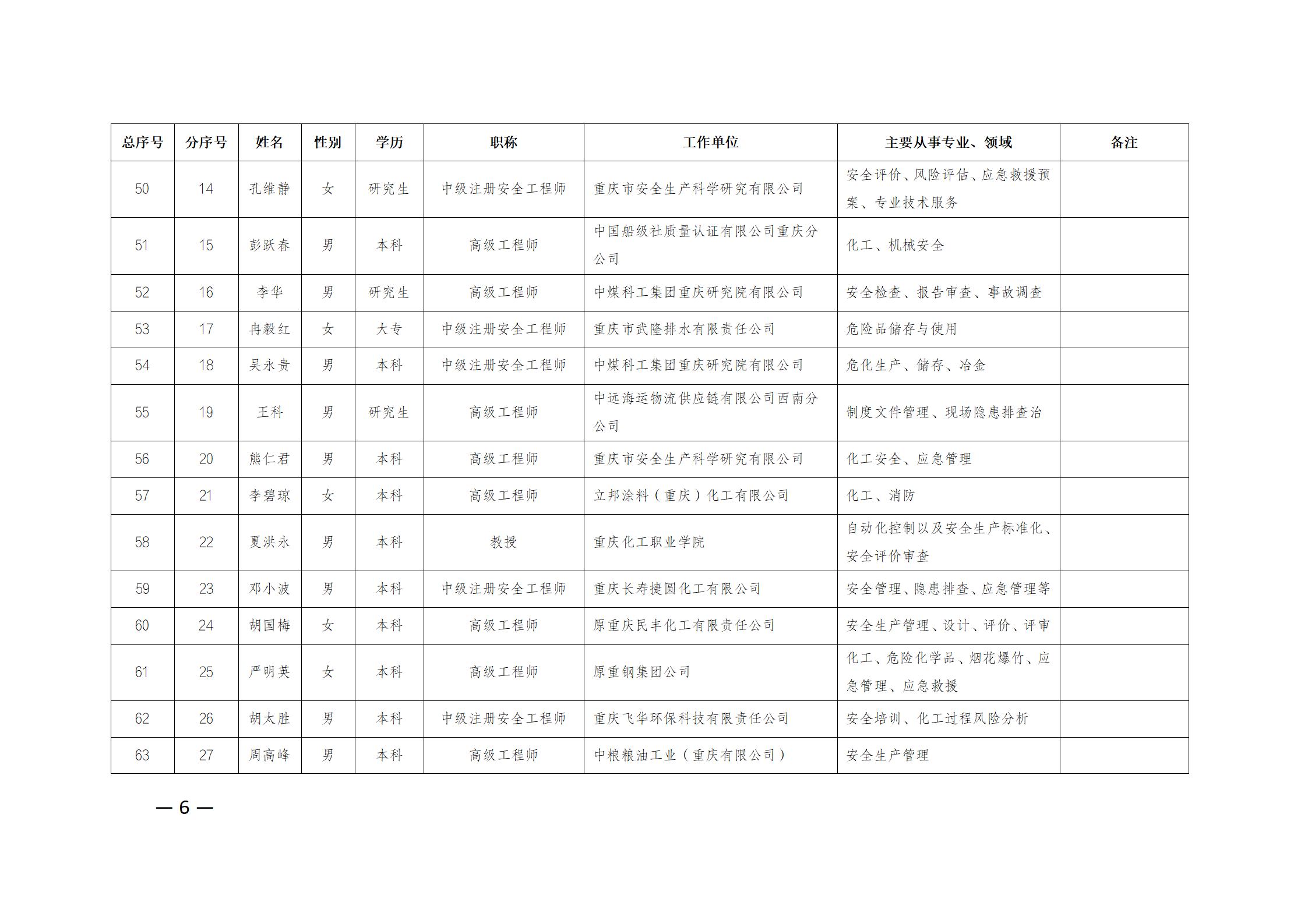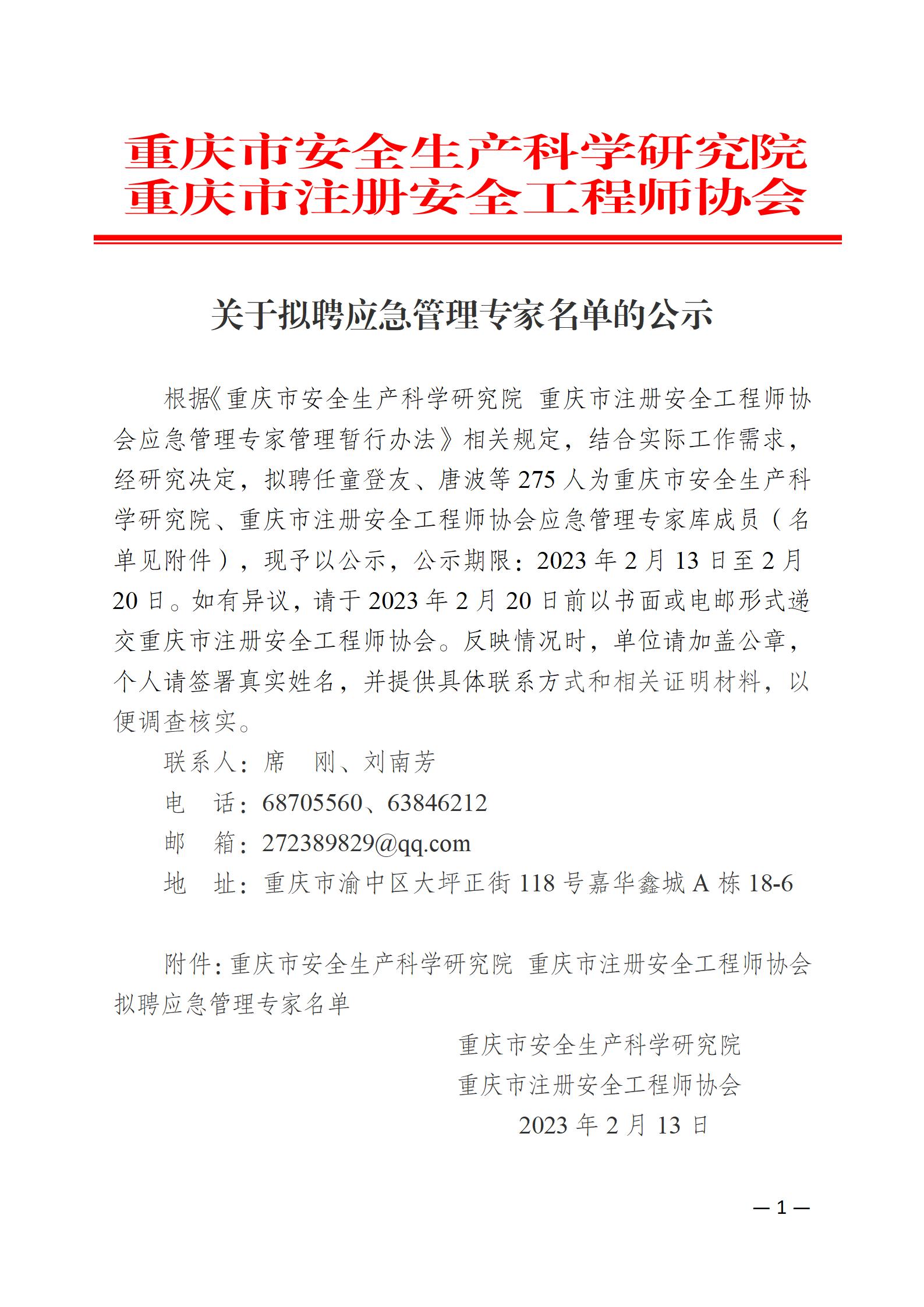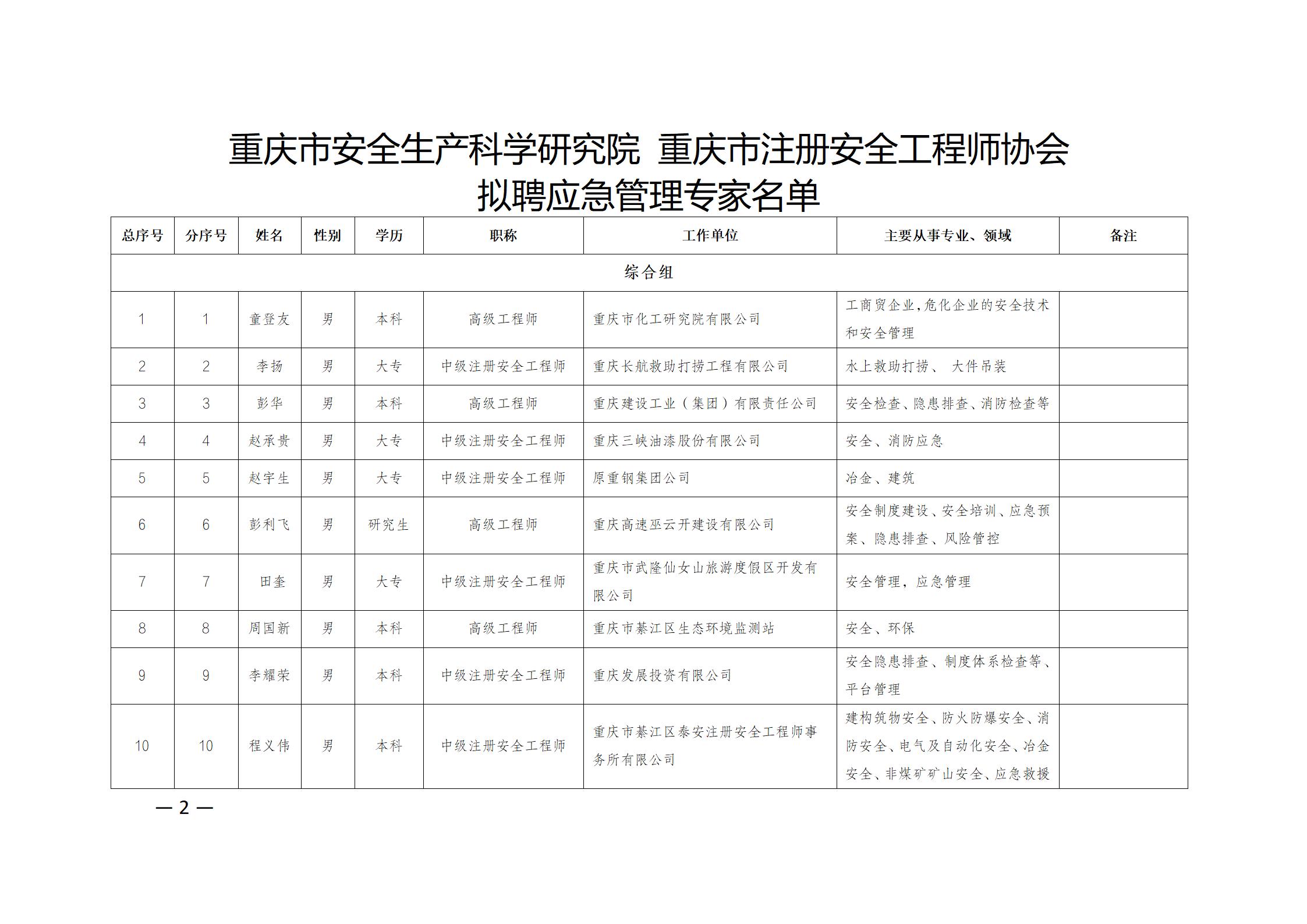 重慶市安全生產(chǎn)科學(xué)研究院 重慶市注冊安全工程師協(xié)會關(guān)于擬聘應(yīng)急管理專家名單的公示
