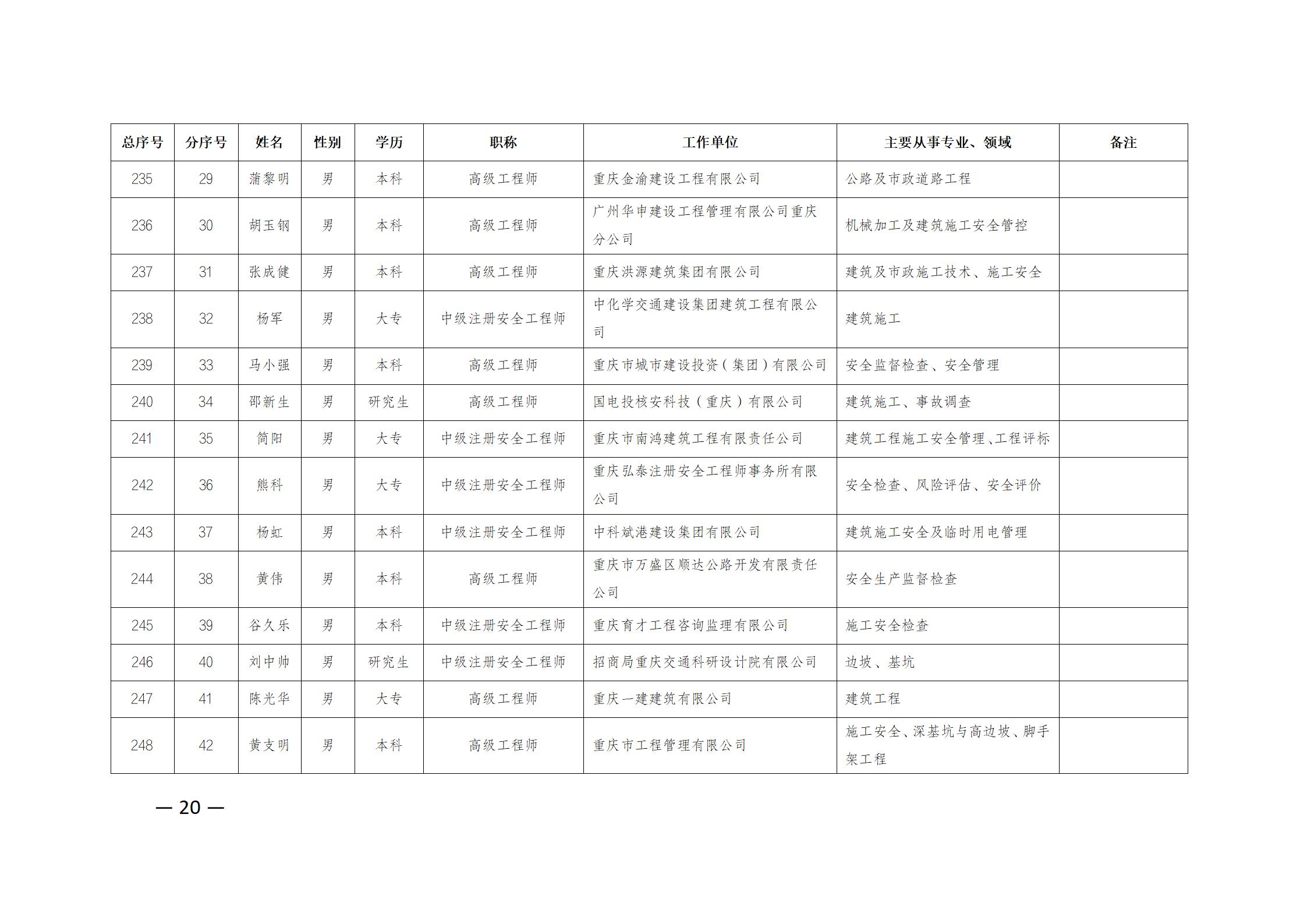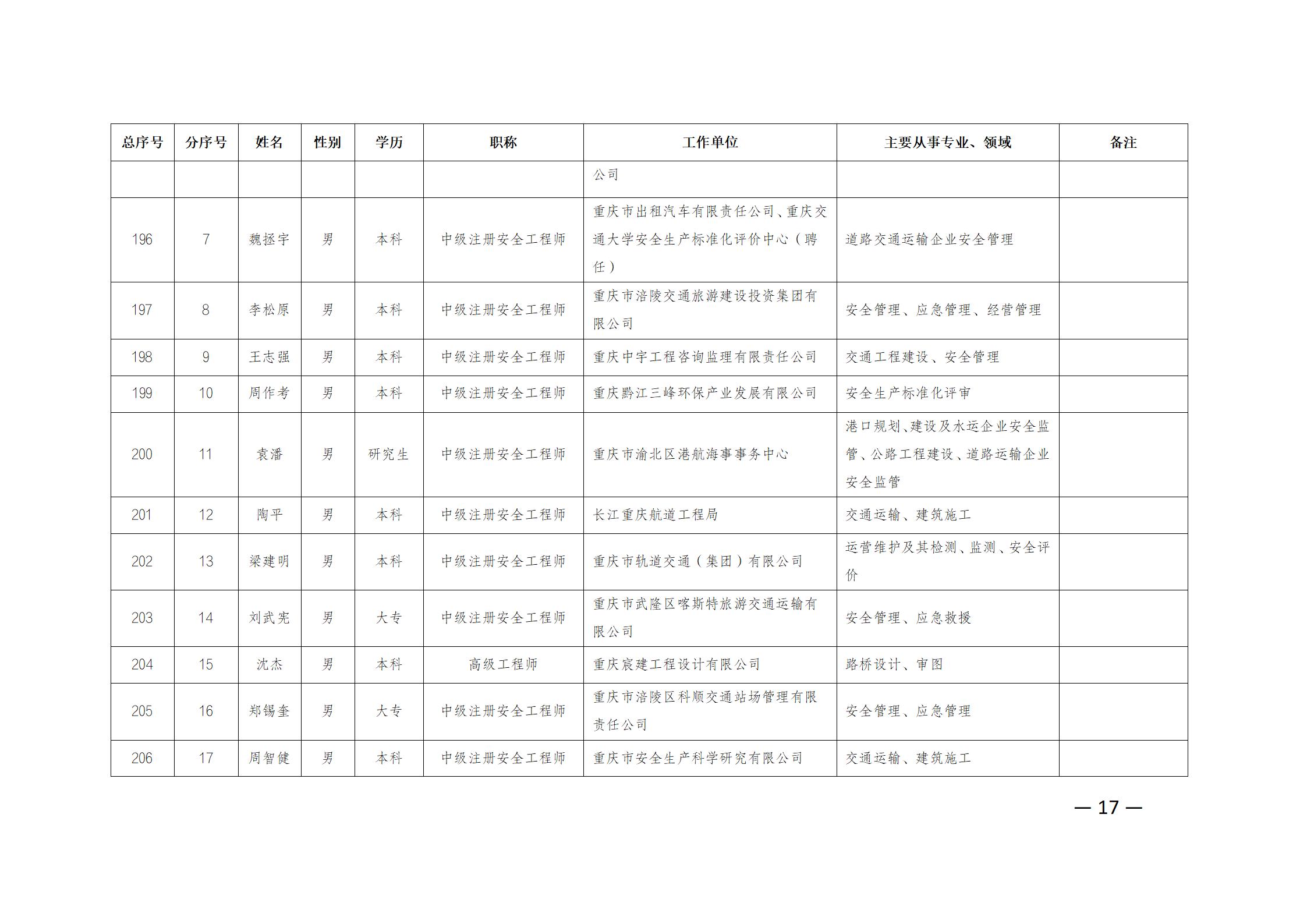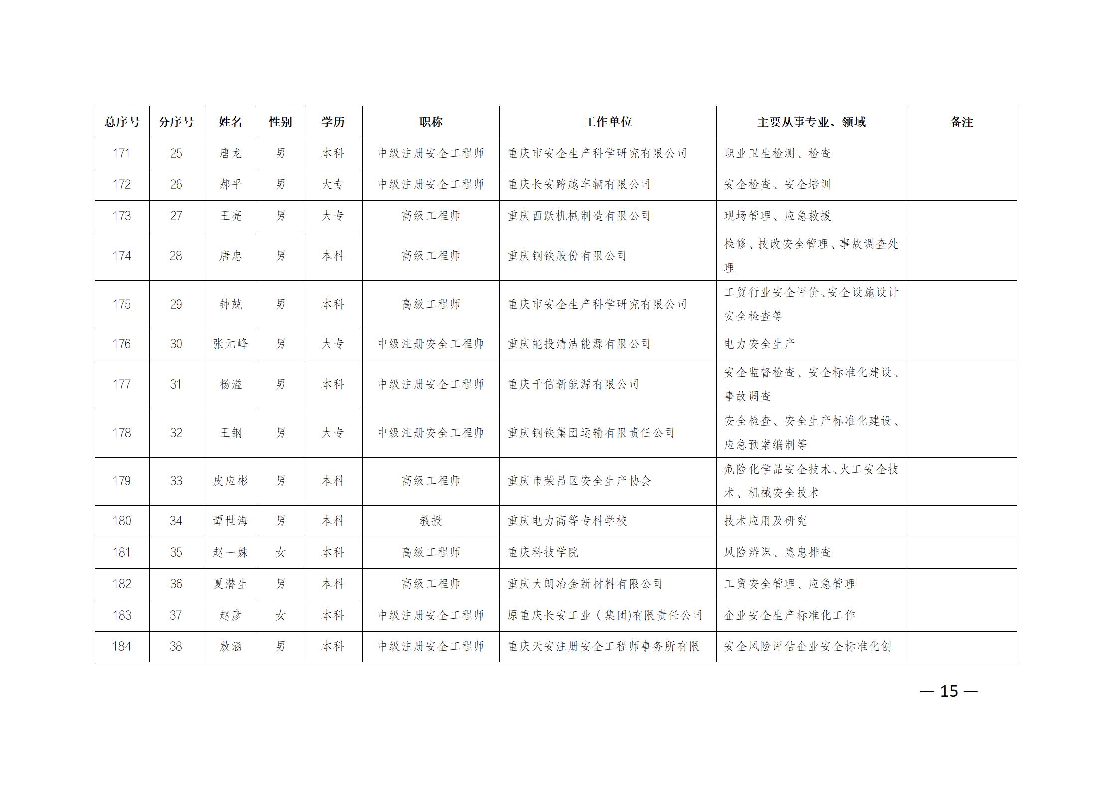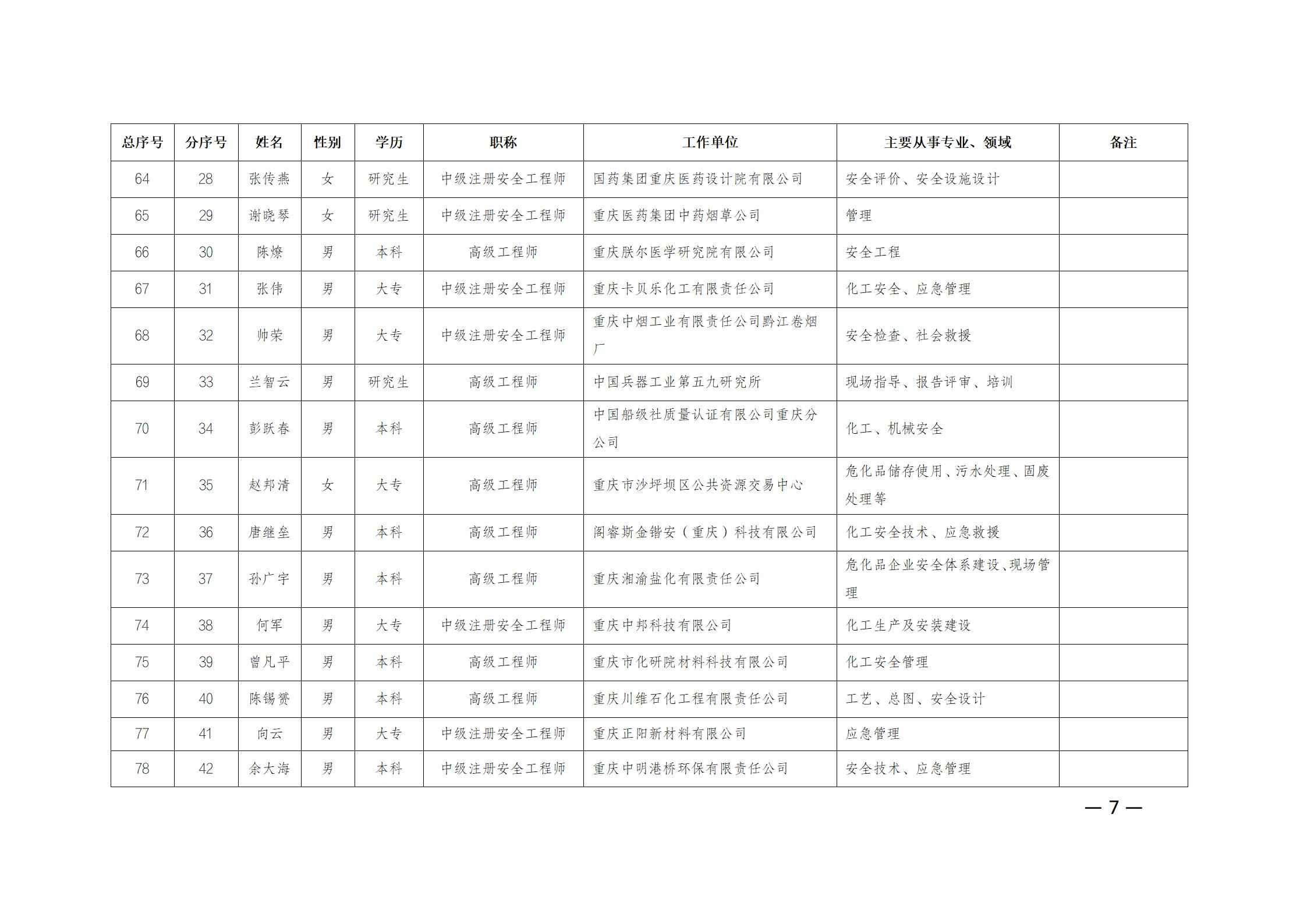重慶市安全生產(chǎn)科學(xué)研究院 重慶市注冊安全工程師協(xié)會關(guān)于擬聘應(yīng)急管理專家名單的公示