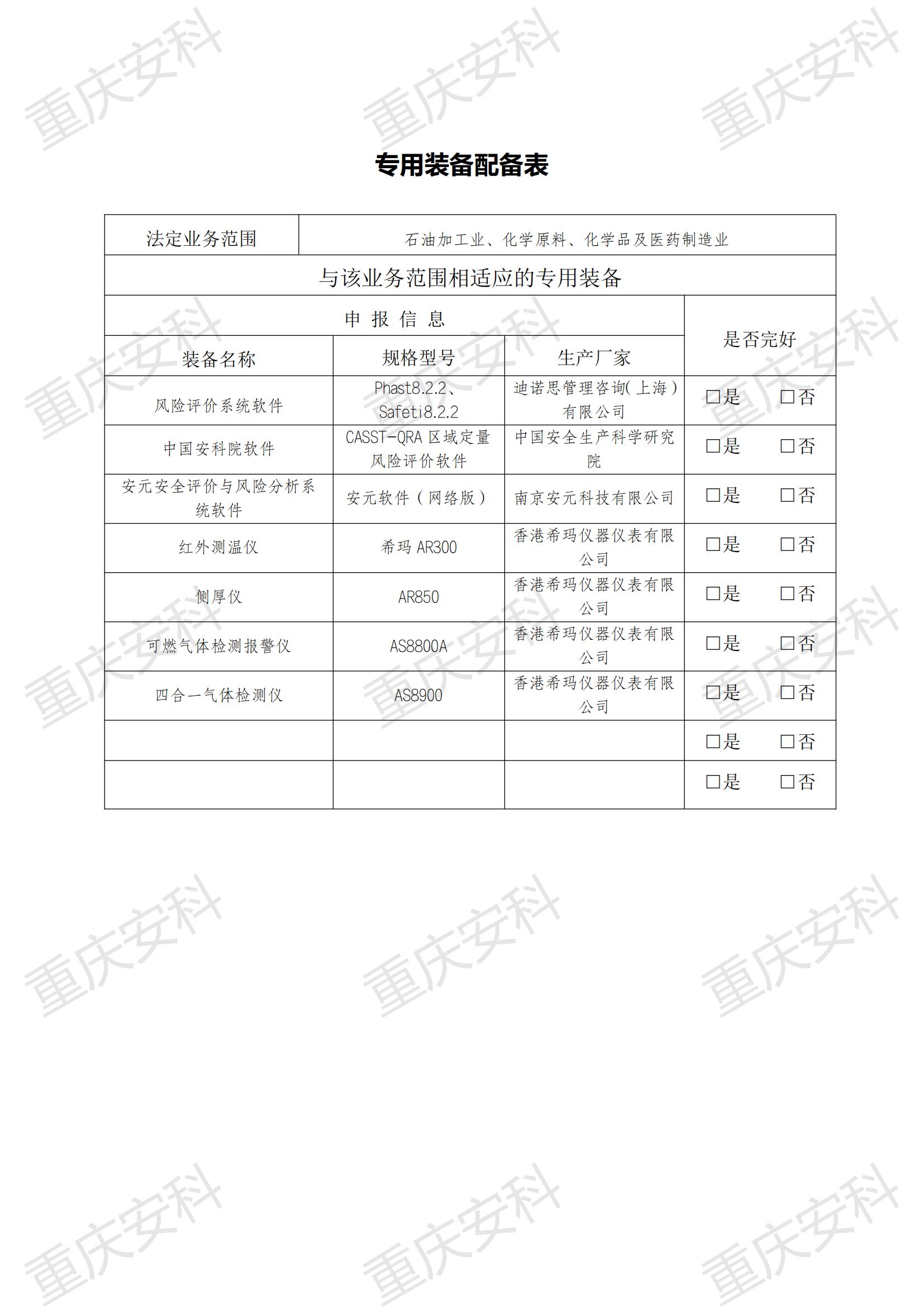 法定評(píng)價(jià)業(yè)務(wù)范圍安全評(píng)價(jià)師配備核查記錄