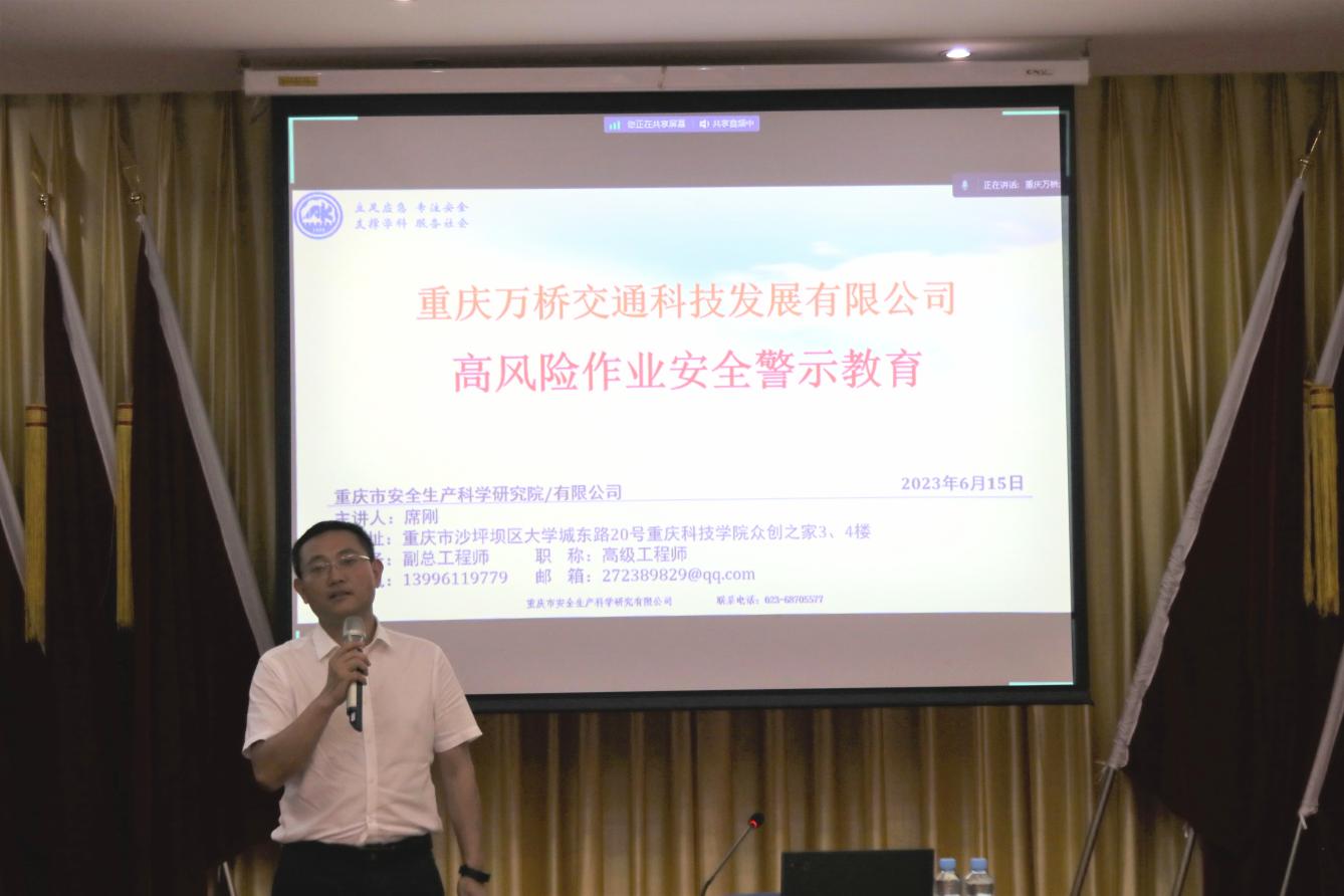 6月,全國安全生產(chǎn)月活動(dòng)如火如荼進(jìn)行,15日重慶萬橋交通科技發(fā)展有限公司(以下簡稱:重慶萬橋公司)開展了一次高風(fēng)險(xiǎn)作業(yè)安全警示教育活動(dòng),我司受其邀請,參加了該活動(dòng)。