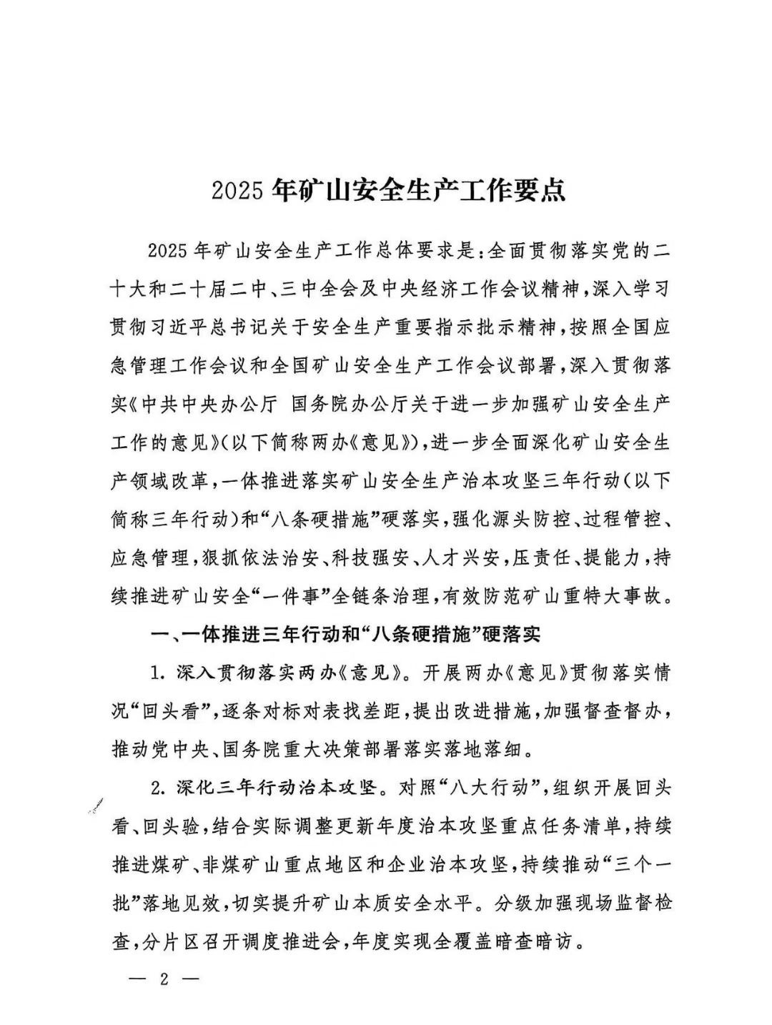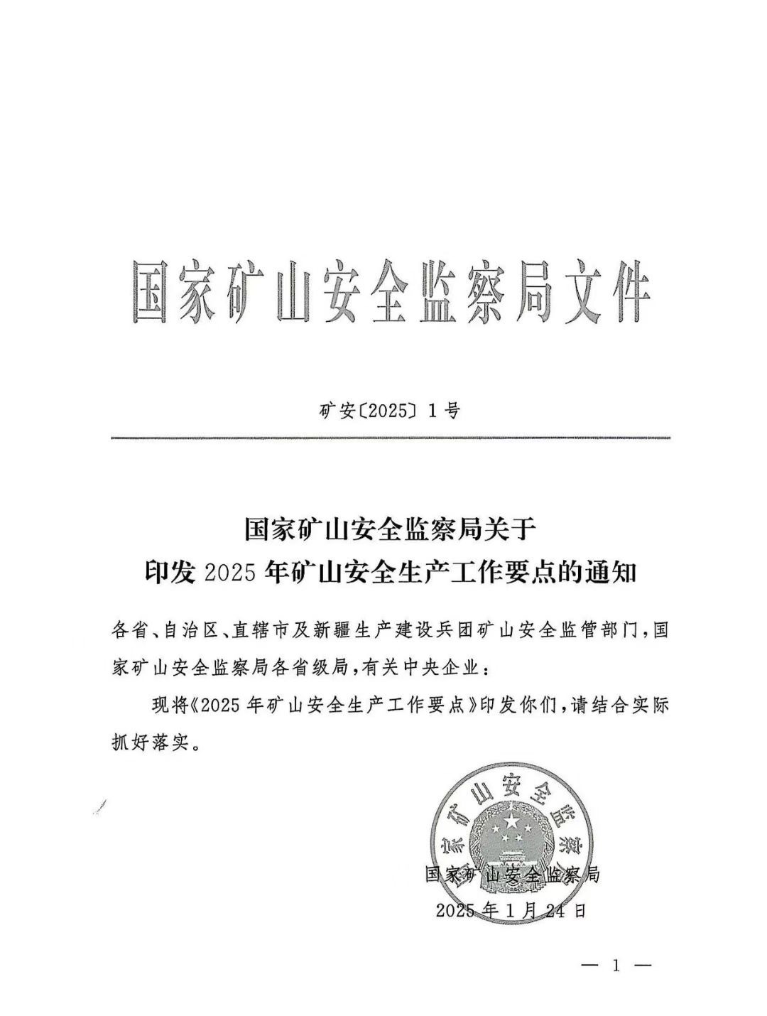 國家礦山安全監(jiān)察局關于印發(fā)2025年礦山安全生產(chǎn)工作要點的通知