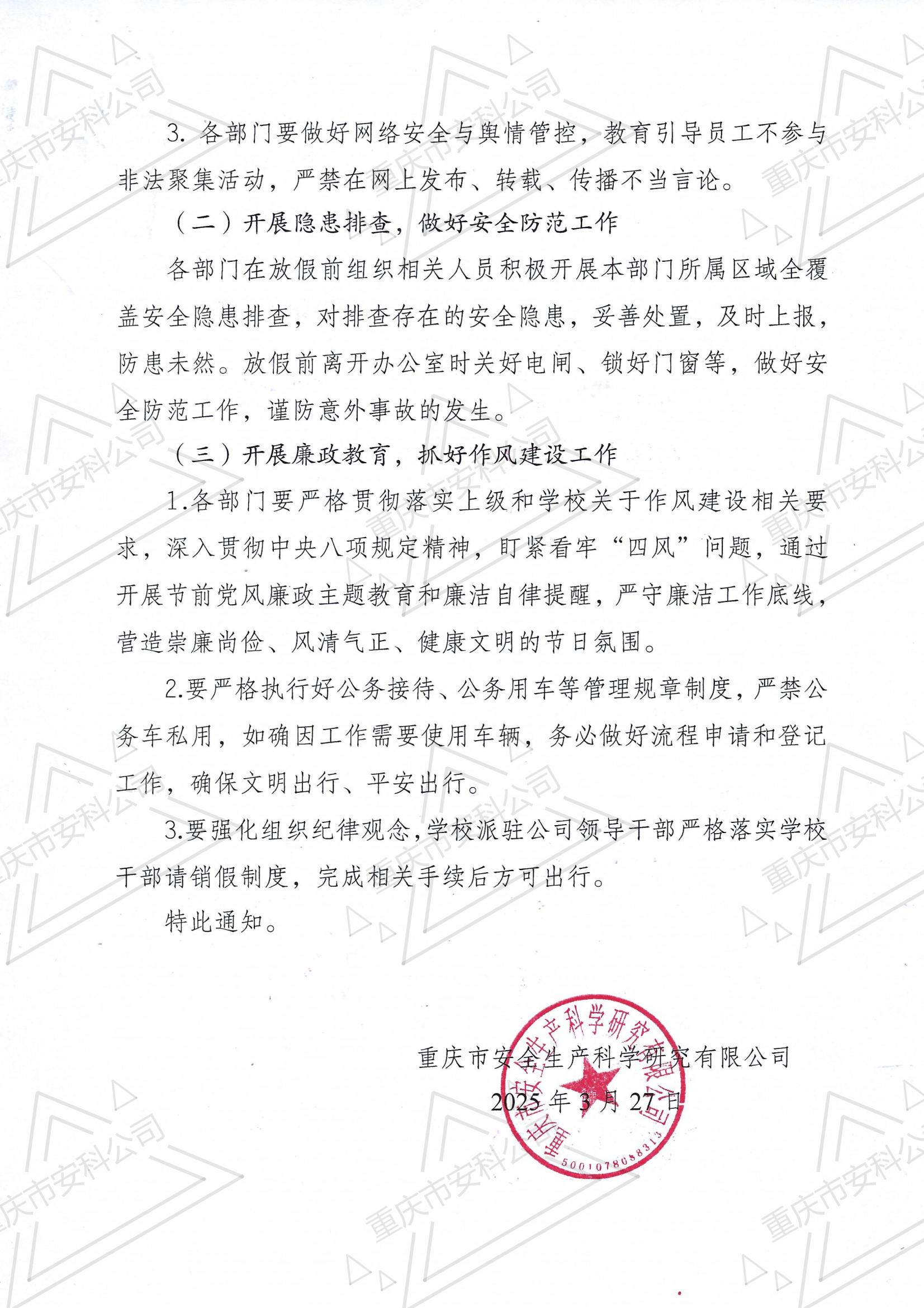 公司關(guān)于2025年清明節(jié)放假有關(guān)事宜的通知
