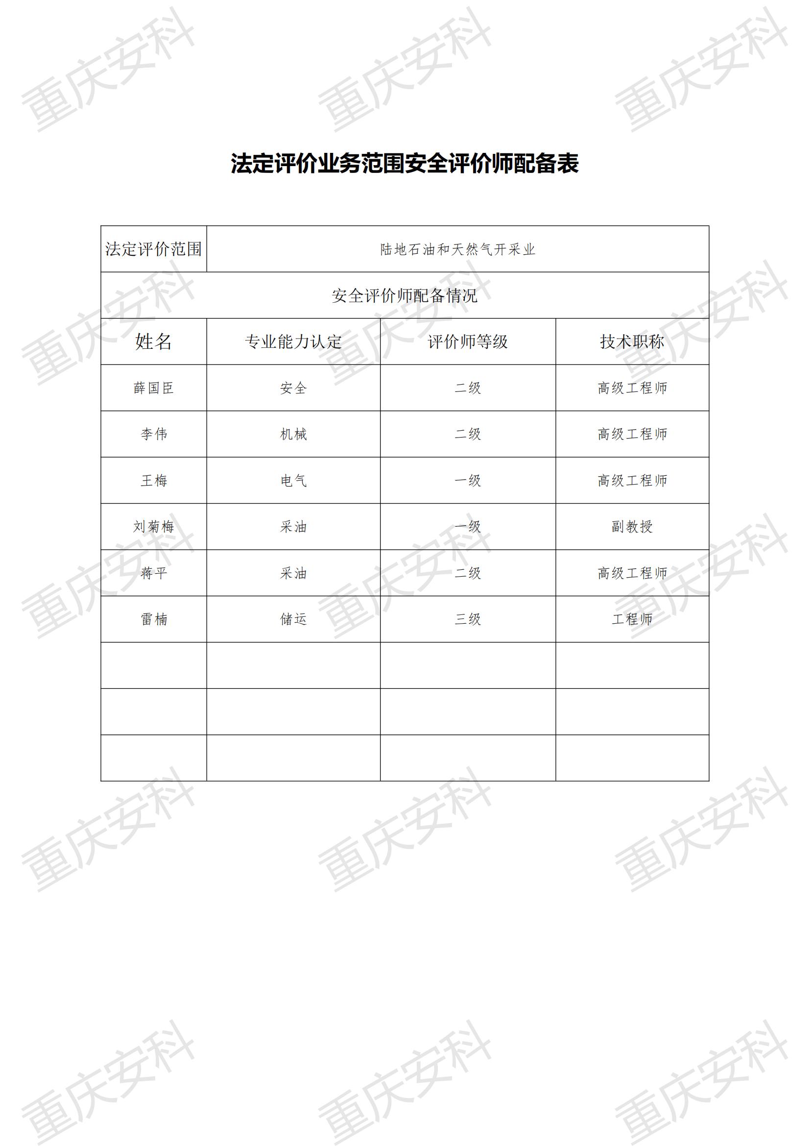 法定評(píng)價(jià)業(yè)務(wù)范圍安全評(píng)價(jià)師配備核查記錄