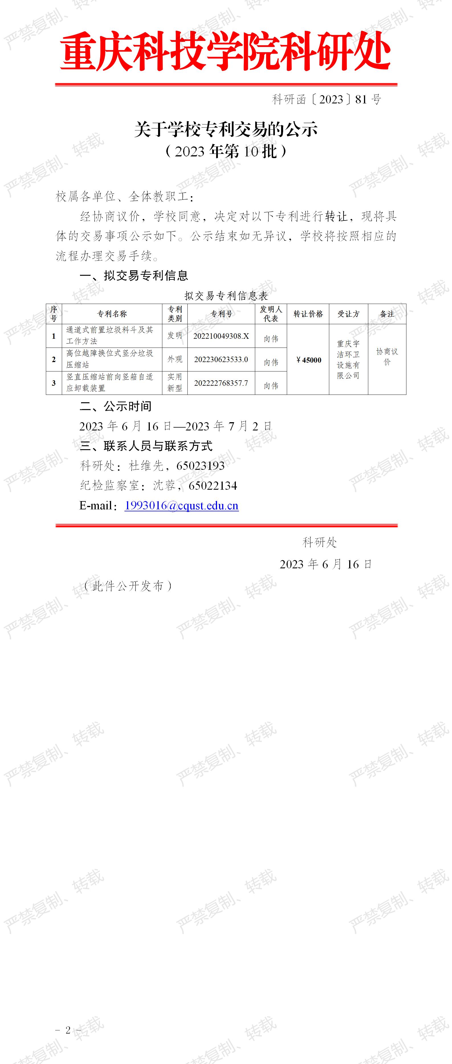 安科公司轉(zhuǎn)發(fā) 關(guān)于學(xué)校專利交易的公示 (2023年第10批)