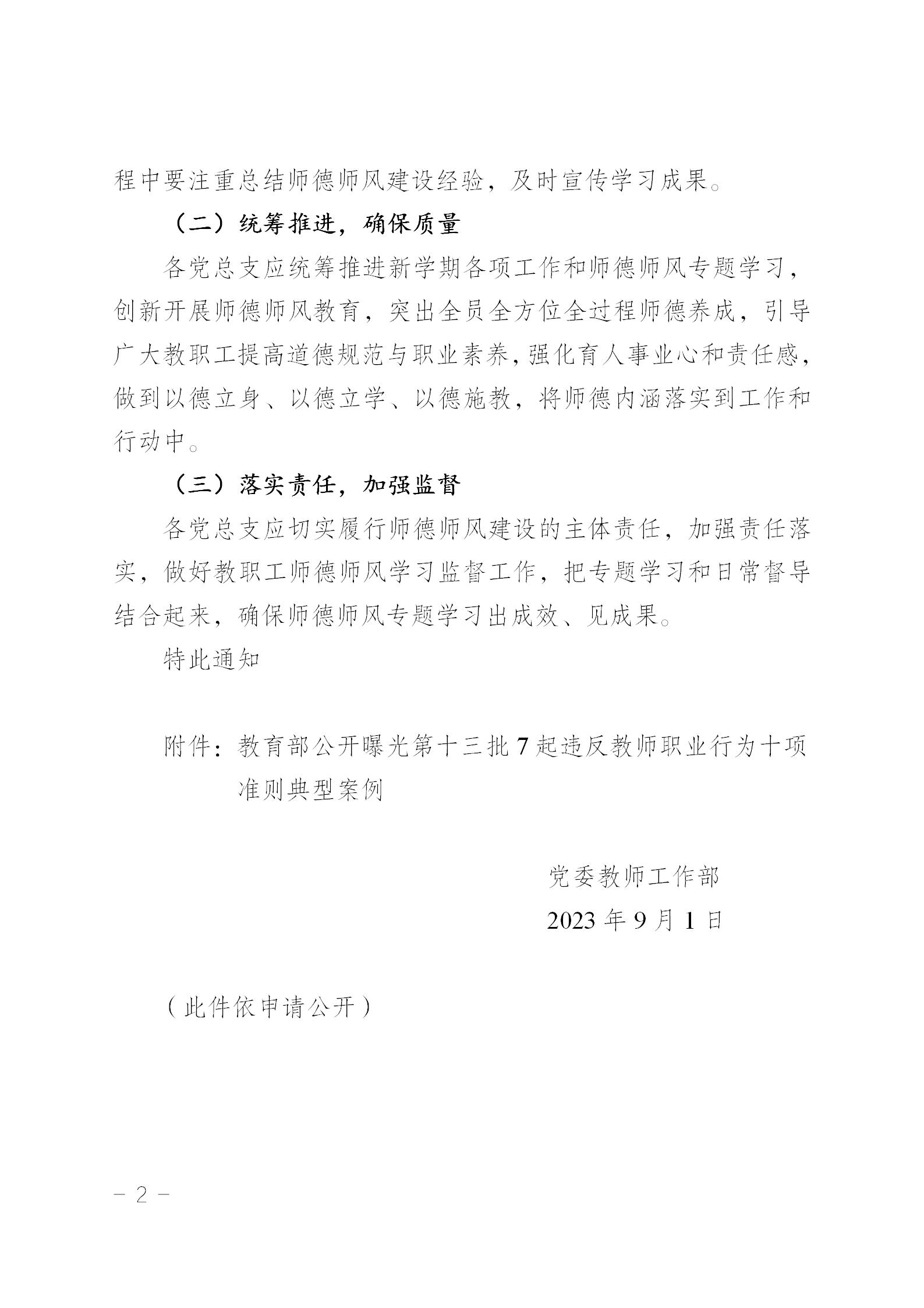關(guān)于開(kāi)展教育部公開(kāi)曝光第十三批7起違反教師職業(yè)行為十項(xiàng)準(zhǔn)則典型案例專(zhuān)題學(xué)習(xí)的通知