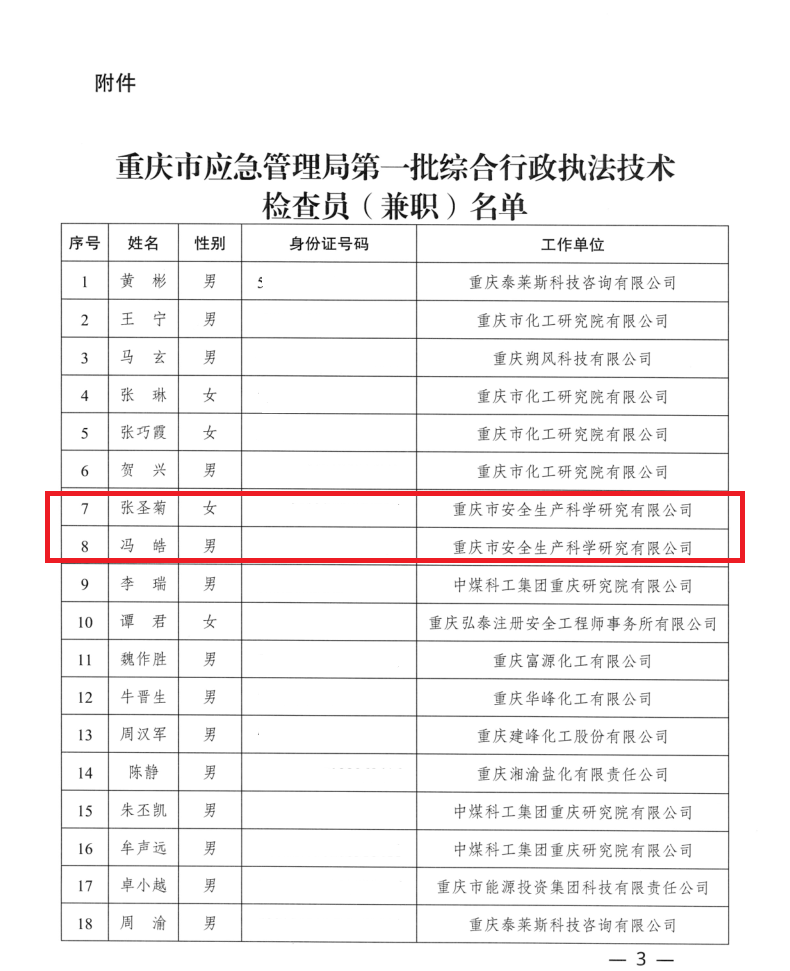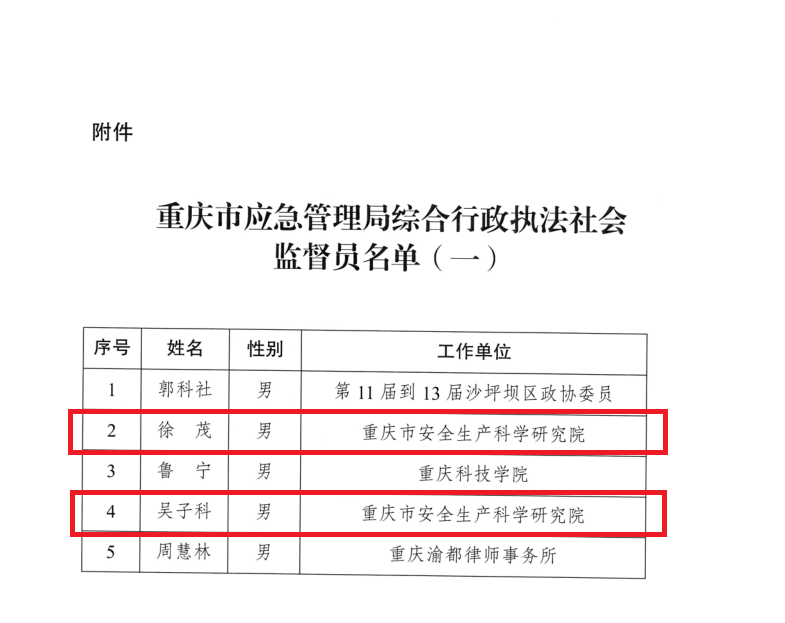 近日,市應急管理局公開面向社會聘任了一批應急管理綜合行政執(zhí)法技術檢查員(兼職)和社會監(jiān)督員。我公司張圣菊、馮皓、李治友、蔣平、高創(chuàng)波、王淑芳等6人獲聘市應急管理綜合行政執(zhí)法技術檢查員(兼職),徐茂、吳子科等2人獲聘市應急管理局社會監(jiān)督員。