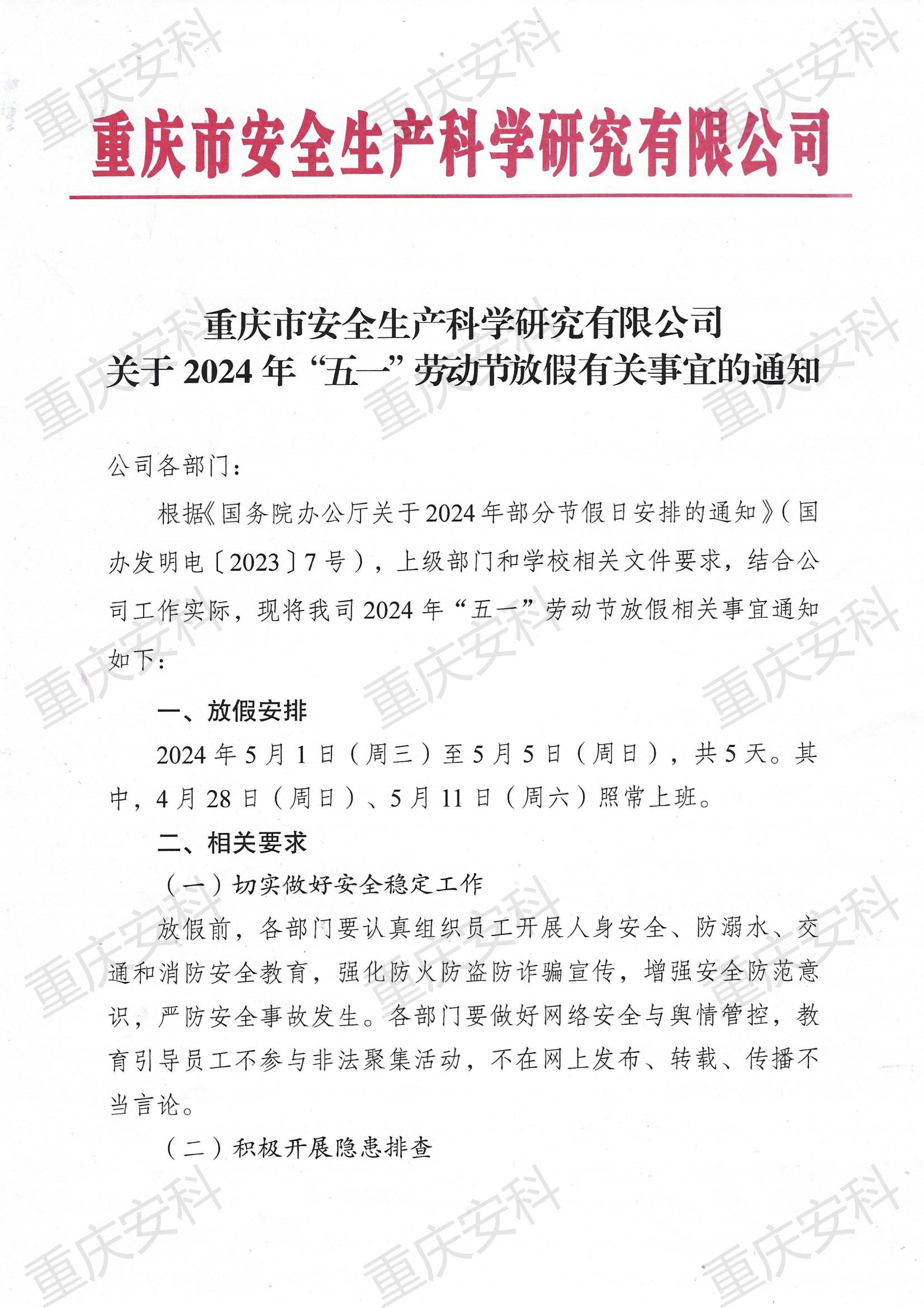公司關于2024年“五一”勞動節(jié)放假有關事宜的通知