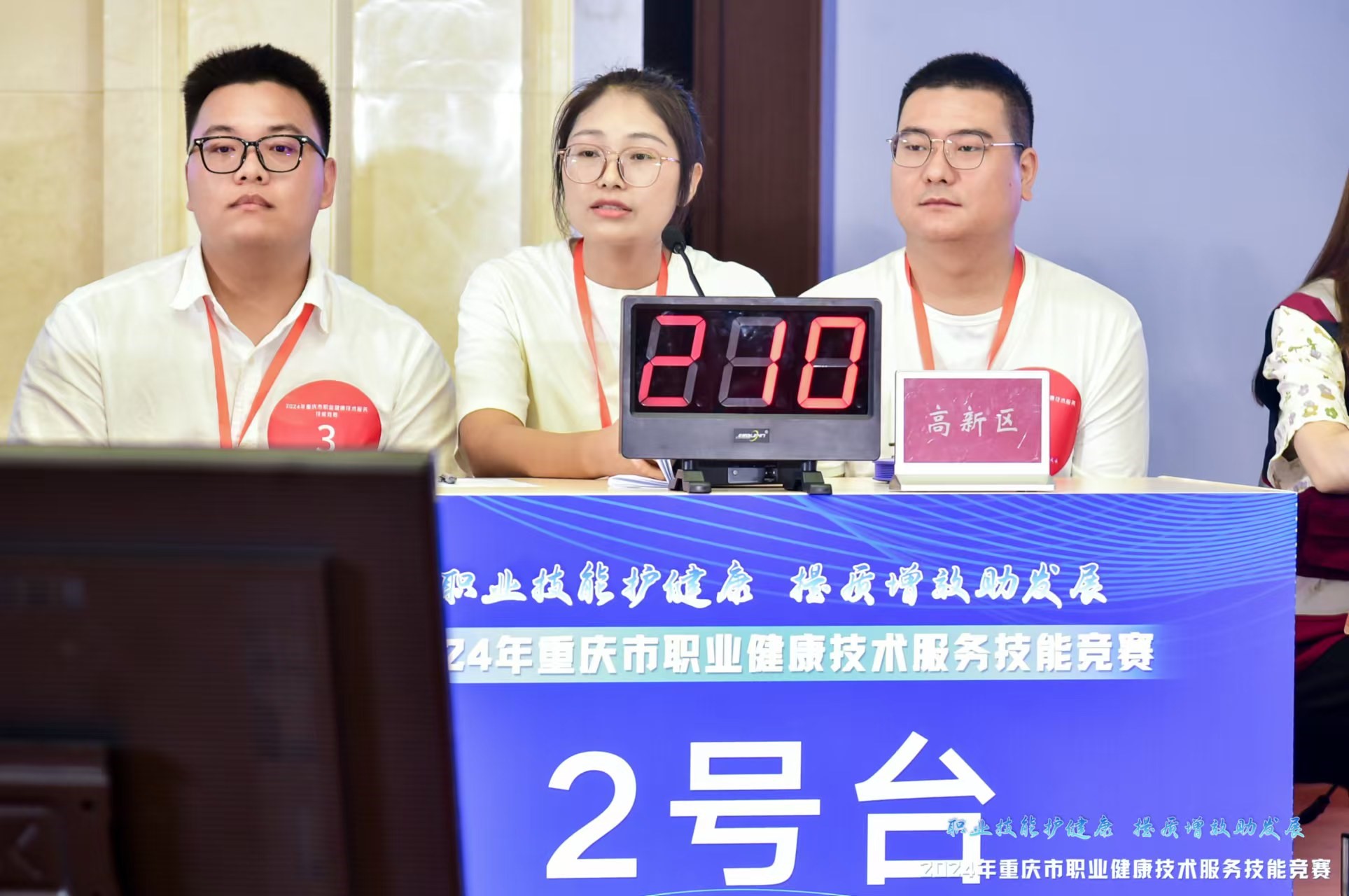 9月21到9月22日,由重慶市衛(wèi)生健康委、重慶市總工會主辦,重慶市疾控中心、重慶市教科文衛(wèi)體工會承辦,以“職業(yè)技能護健康,提質(zhì)增效助發(fā)展”為主題的2024年重慶市職業(yè)健康技術(shù)服務(wù)技能競賽在重慶市疾控中心舉行,來自全市的40支代表隊,共262名職業(yè)健康專業(yè)技術(shù)人員參加了比賽。我司古鳳玉、杜博、王雨代表重慶市高新區(qū)在職業(yè)衛(wèi)生檢測與評價組的競賽中獲得團體三等獎。